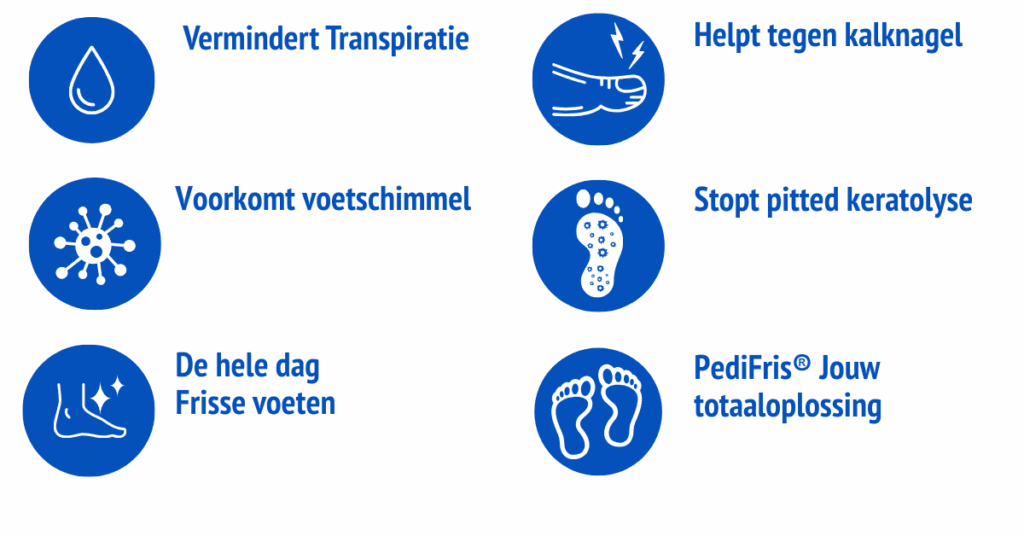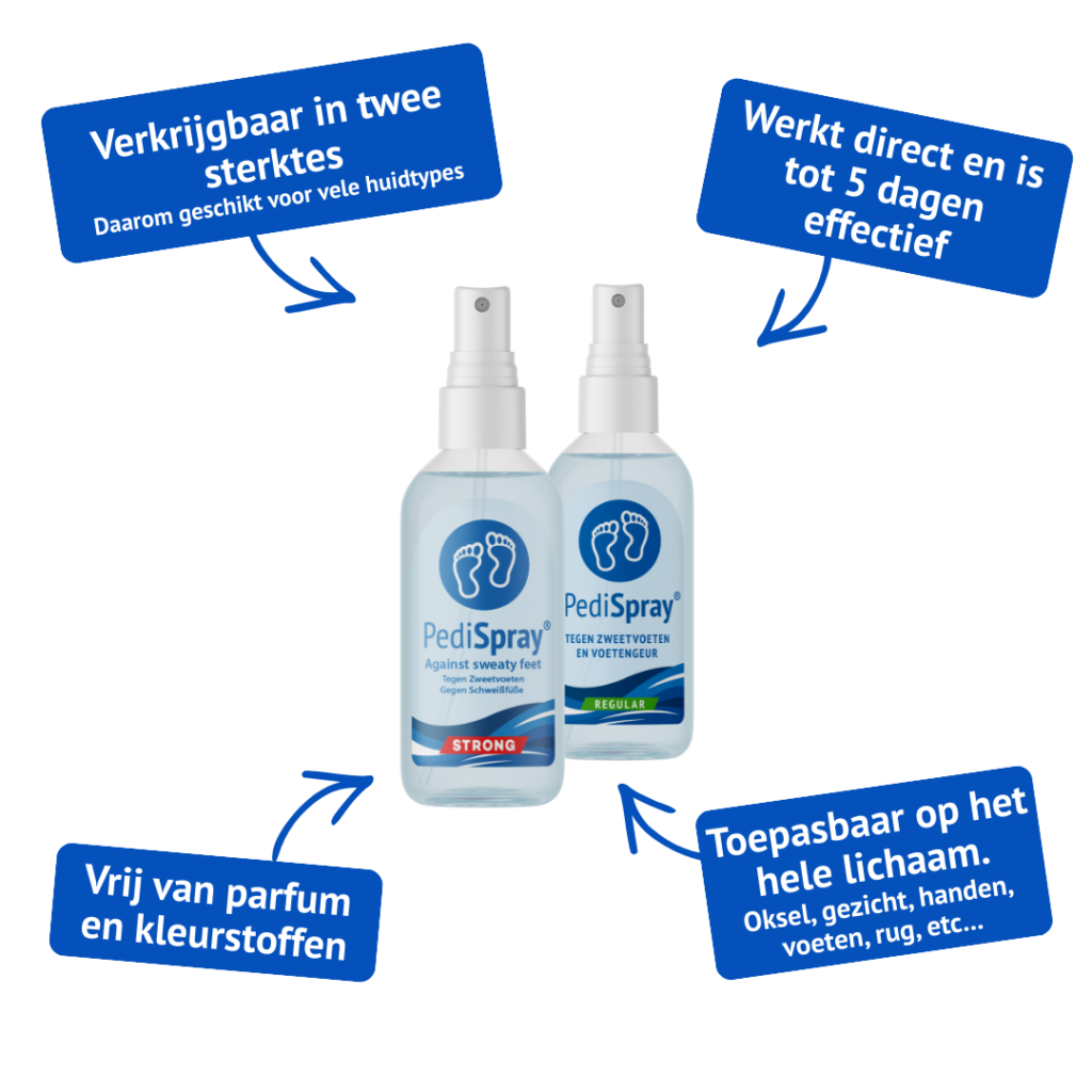 PediSpray® affronta il problema da dove parte: dal sudore stesso.Regolando la traspirazione, si elimina immediatamente la causa principale del cattivo odore e del terreno di coltura dei funghi. Questo fa di PediSpray® un rimedio superiore per i piedi sudati.stesso.Regolando la traspirazione, si elimina immediatamente la causa principale del cattivo odore e del terreno di coltura dei funghi. Questo fa di PediSpray® un rimedio superiore per i piedi sudati.