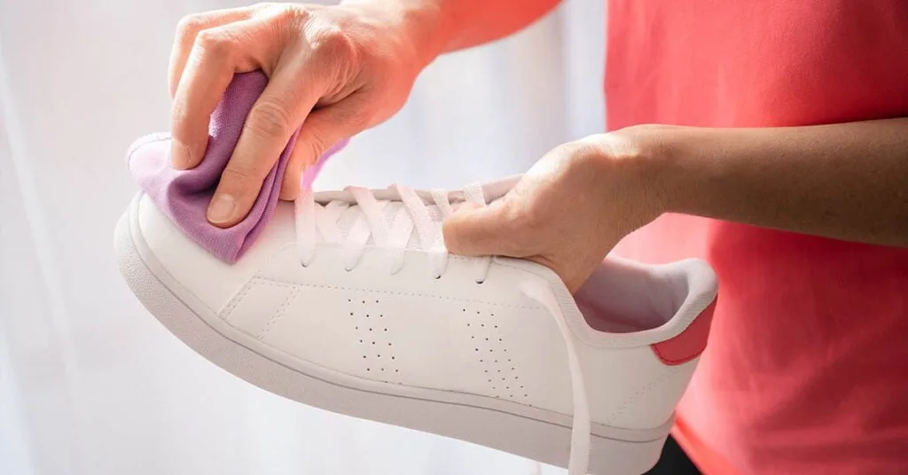 Pulizia delle scarpe di pelle bianca